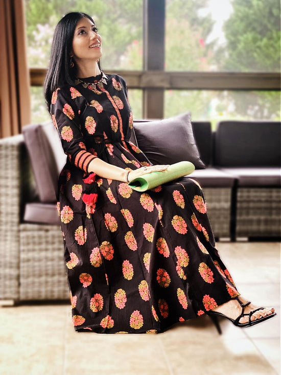 Shop NowOur Rajasthani hand block print flare dress can be glamoured up or down per occasion.