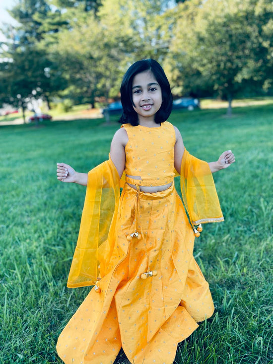 Shop NowRiyanshi is a toy reviewer from NC and loved our Yellow embroidered lehenga set.