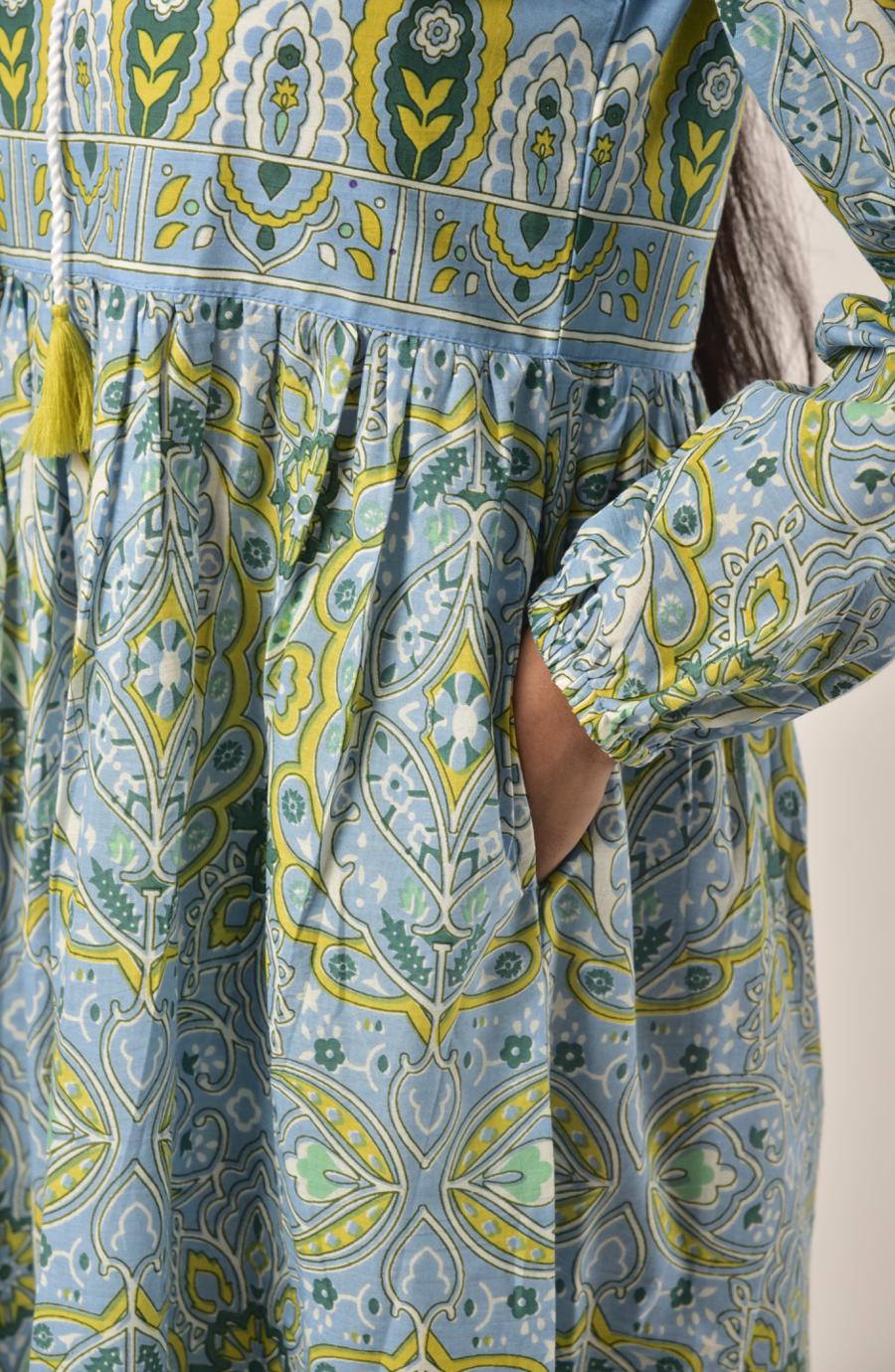 All of the designs of these dresses are screen printed. Natural Colors tend to run in the first wash. All the products are handmade add an artisanal value to each dress. Slight variation in color can be expected due to photography effects