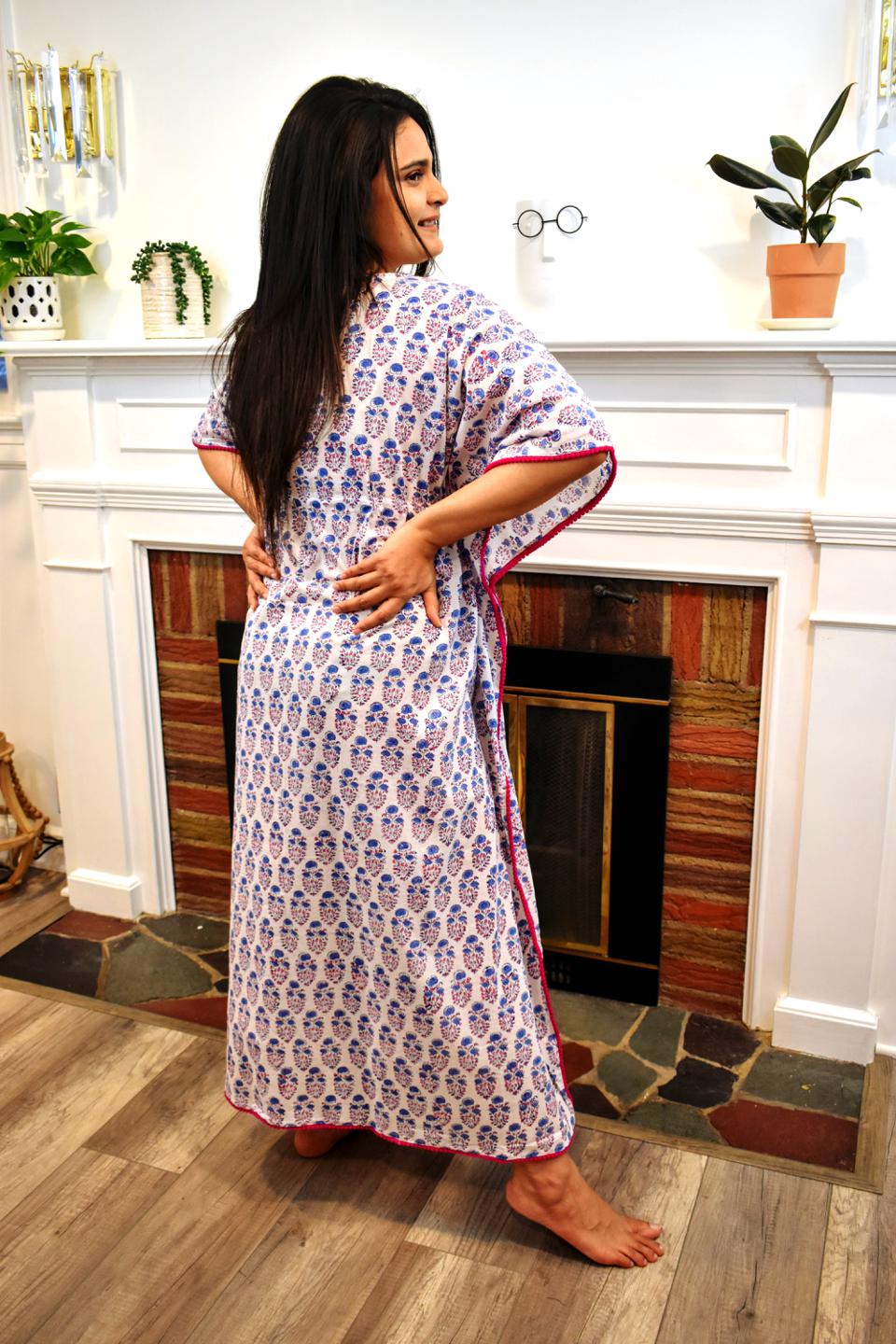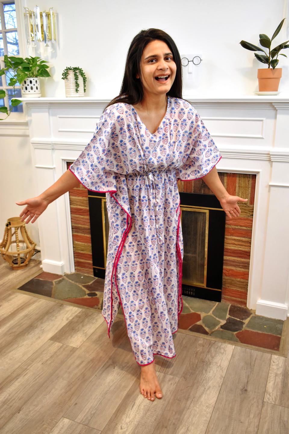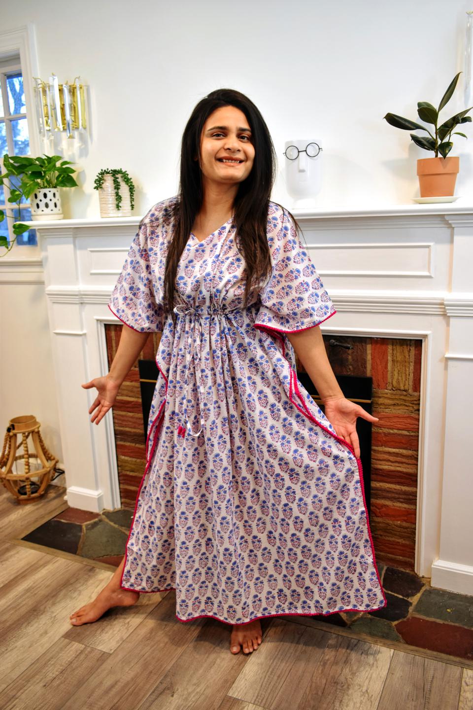 This caftan dress cover up is made of a best quality material with no structure so that it drapes effortlessly and elegantly. It is very forgiving and loose fitting for maximum comfort and best wear. Colors are very vibrant and unique. Each dress is handmade and timeless. The color combinations are unique. Can be worn as a dress, coverup at the beach, or for parties and nights out during the summertime!