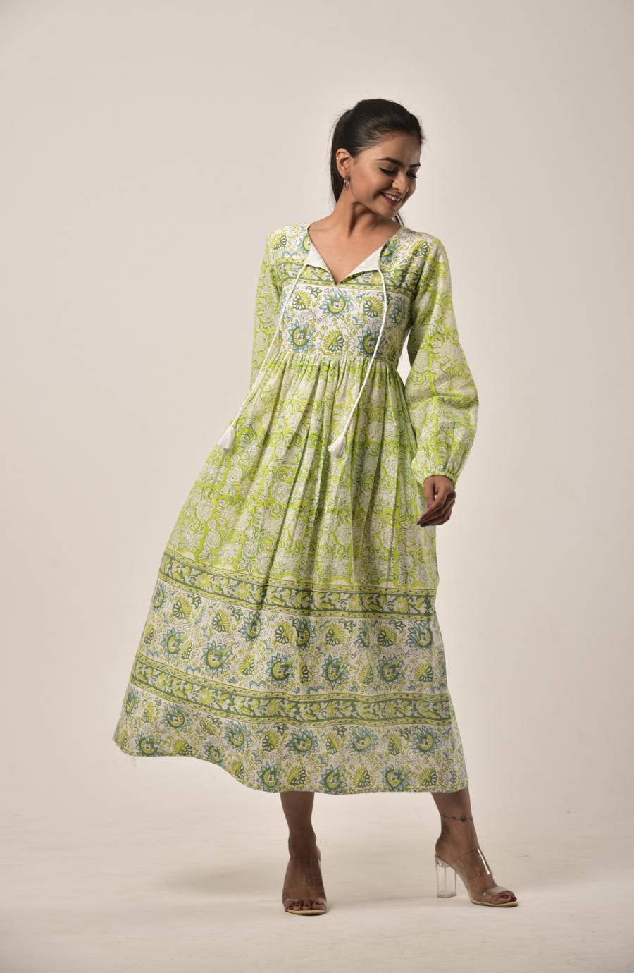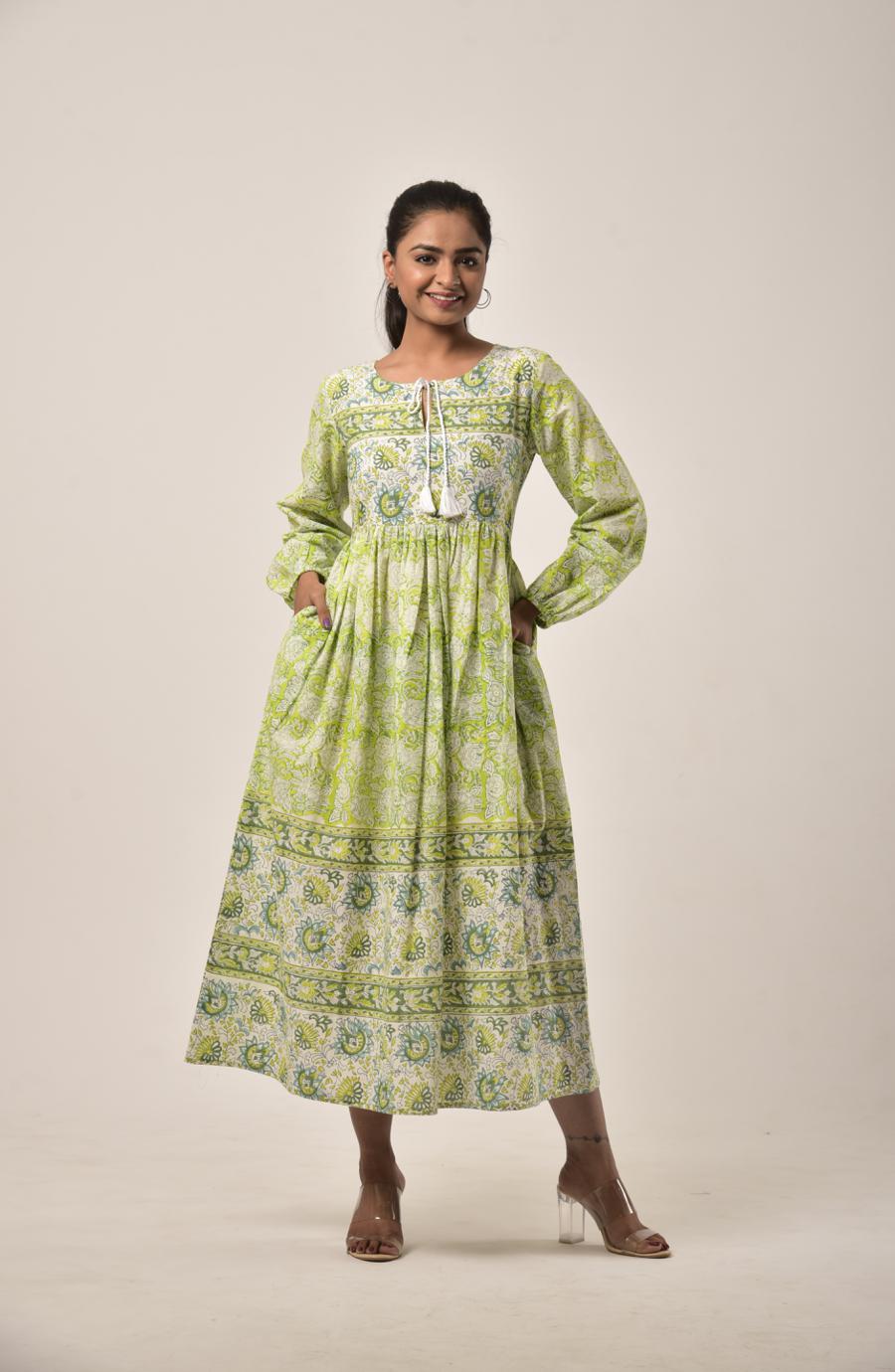 All of the designs of these dresses are screen printed. Natural Colors tend to run in the first wash. All the products are handmade add an artisanal value to each dress. Slight variation in color can be expected due to photography effects