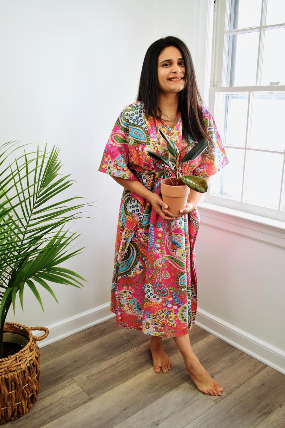 Cotton Pink Paisley Print Short Caftan